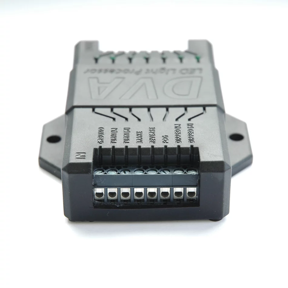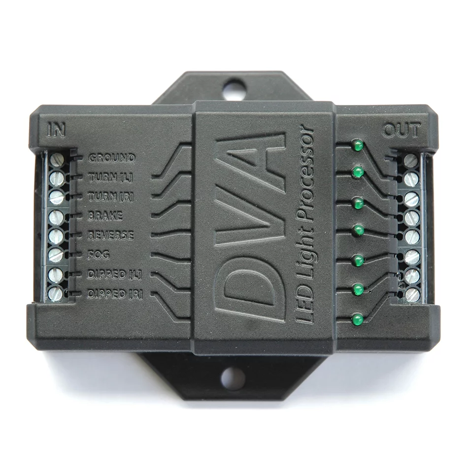 Heeft u last van storingen of andere rare bijverschijnselen bij het gebruik van LED verlichting in combinatie met uw auto? Met de DVA LED Light Processor zijn al deze problemen voorgoed verleden tijd! Dit handige kastje kunt u gemakkelijk in uw aanhangwagen, boottrailer, paardentrailer of caravan monteren. De LED Light processoir is voorzien van een intelligent elektronica systeem dat communiceert met het CAN Bus systeem van het trekkende voertuig en is zo gemaakt dat in vrijwel alle gevallen de verlichting werkt zoals u dat verwacht! De DVA LED Light Processor is vrijwel met alle LED lampen te gebruiken en werkt probleemloos met zeker 95% van alle auto's.