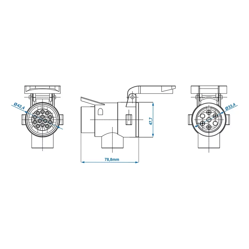 Verloopstekker 7-polig naar doos 13-polig met constante + voor caravan
